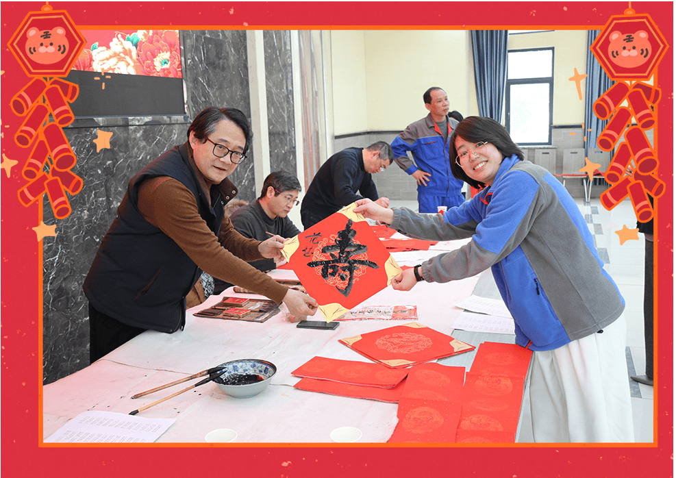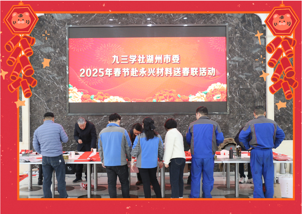 灵蛇迎岁,新元肇始。1月23日上午,九三学社湖州市委的书法家们来到永兴,为公司员工送上新春的祝福。他们笔力遒劲,挥毫泼墨,笔触间蕴含着深厚的文化底蕴与新春的吉祥气息。现场气氛活跃,书法家们根据员工的个性需求精心创作,员工们纷纷排队领取,一幅幅独具匠心的春联带着浓浓的温情和祝福。随着书法作品一一完成,墨香扑鼻,员工们感受到新春的喜悦和九三学社的深情厚意。这一场书法赠春的活动,不仅让大家感受到传统文化的魅力,也增添了新春佳节的喜庆氛围。